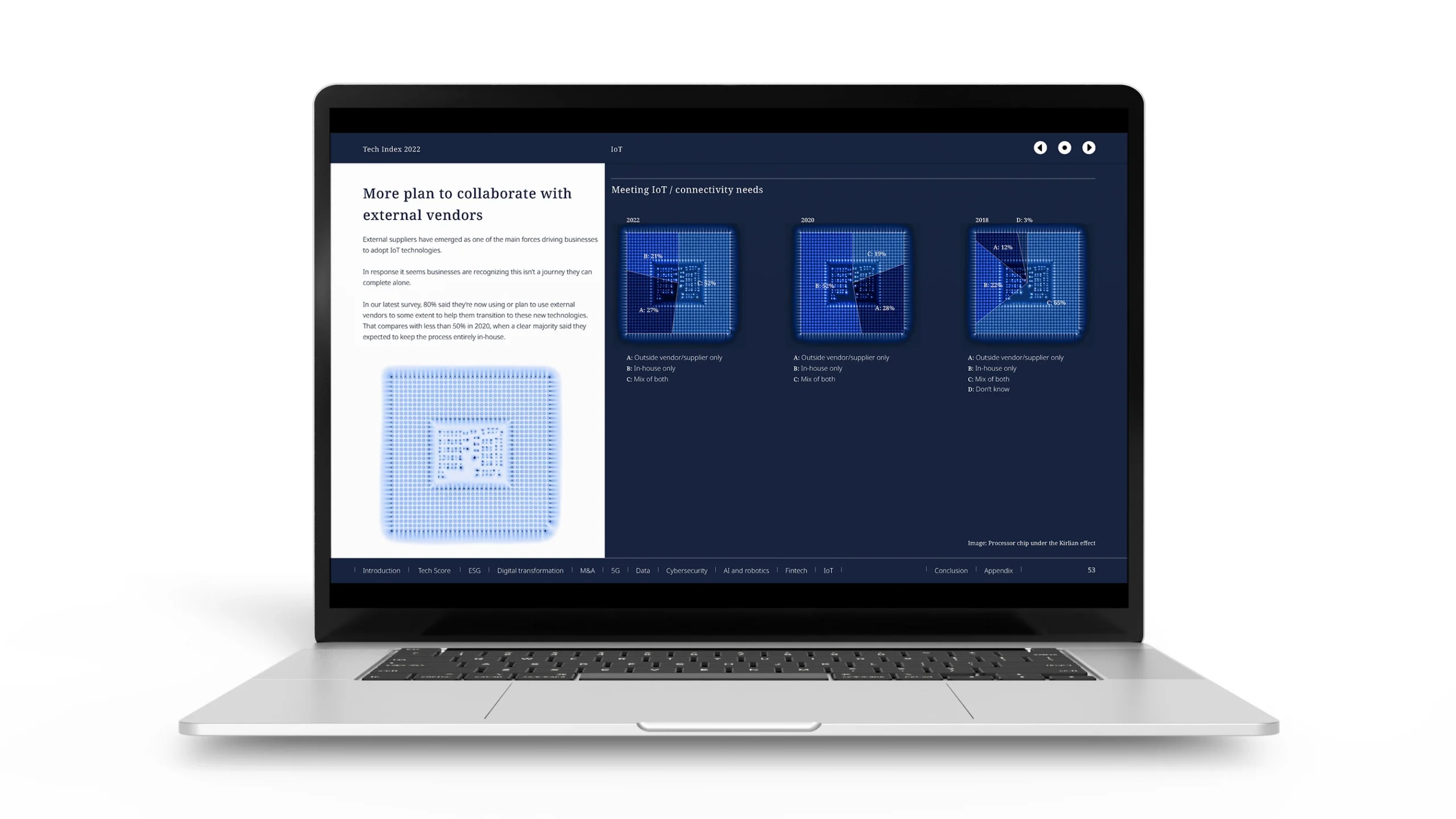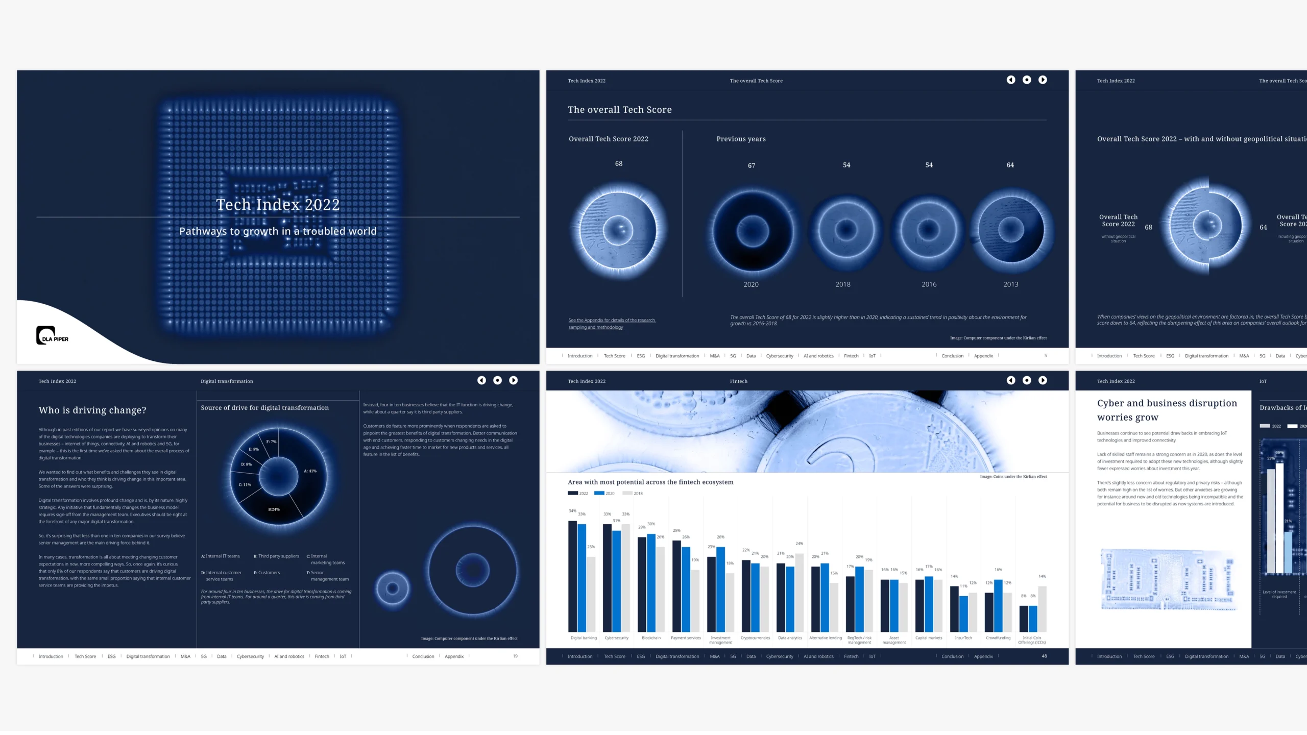 The Tech Index report is a biannual report published by long standing client DLA Piper in collaboration with a research agency scoring the tech sector and exploring current issues and trends. This Tech Index was the sixth edition and needed a new approach to communicate important datapoints and shifting trends.